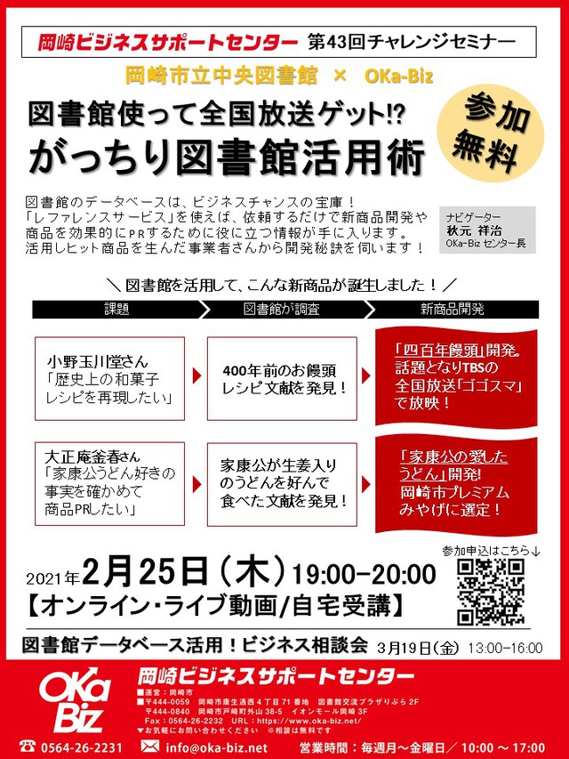 2/25(木)オカビズオンラインセミナー「図書館使って全国放送ゲット!? がっちり図書館活用術」開催!