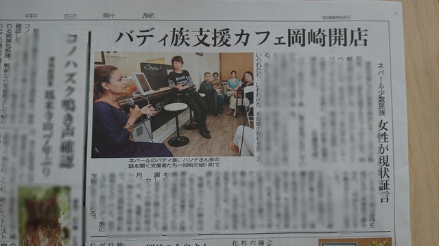 ゴスペルエイド・フォー・アジア「バディカフェ」2017年6月13日の中日新聞に掲載されました!