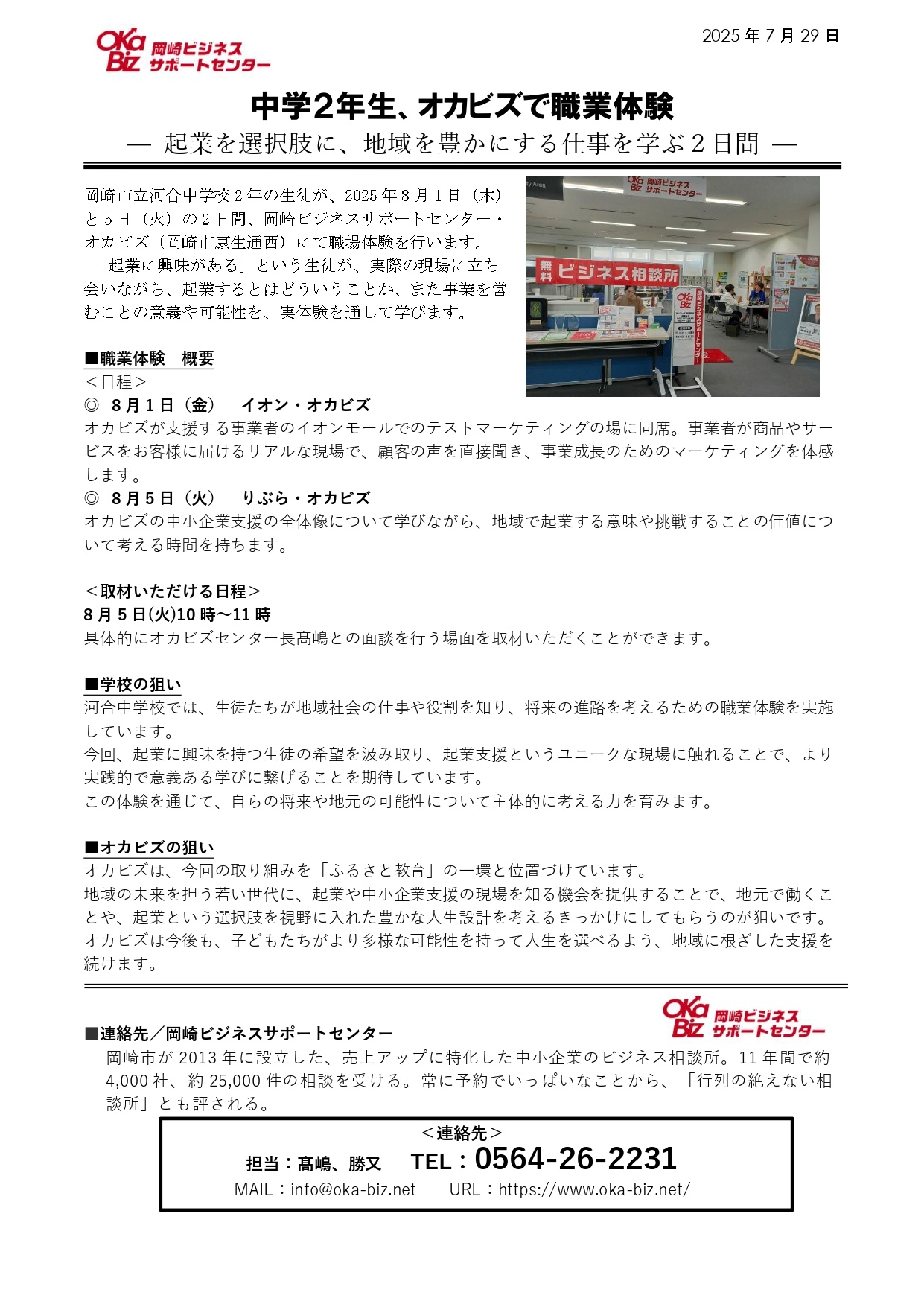 中学2年生、オカビズで職業体験 起業を選択肢に、地域を豊かにする仕事を学ぶ2日間
