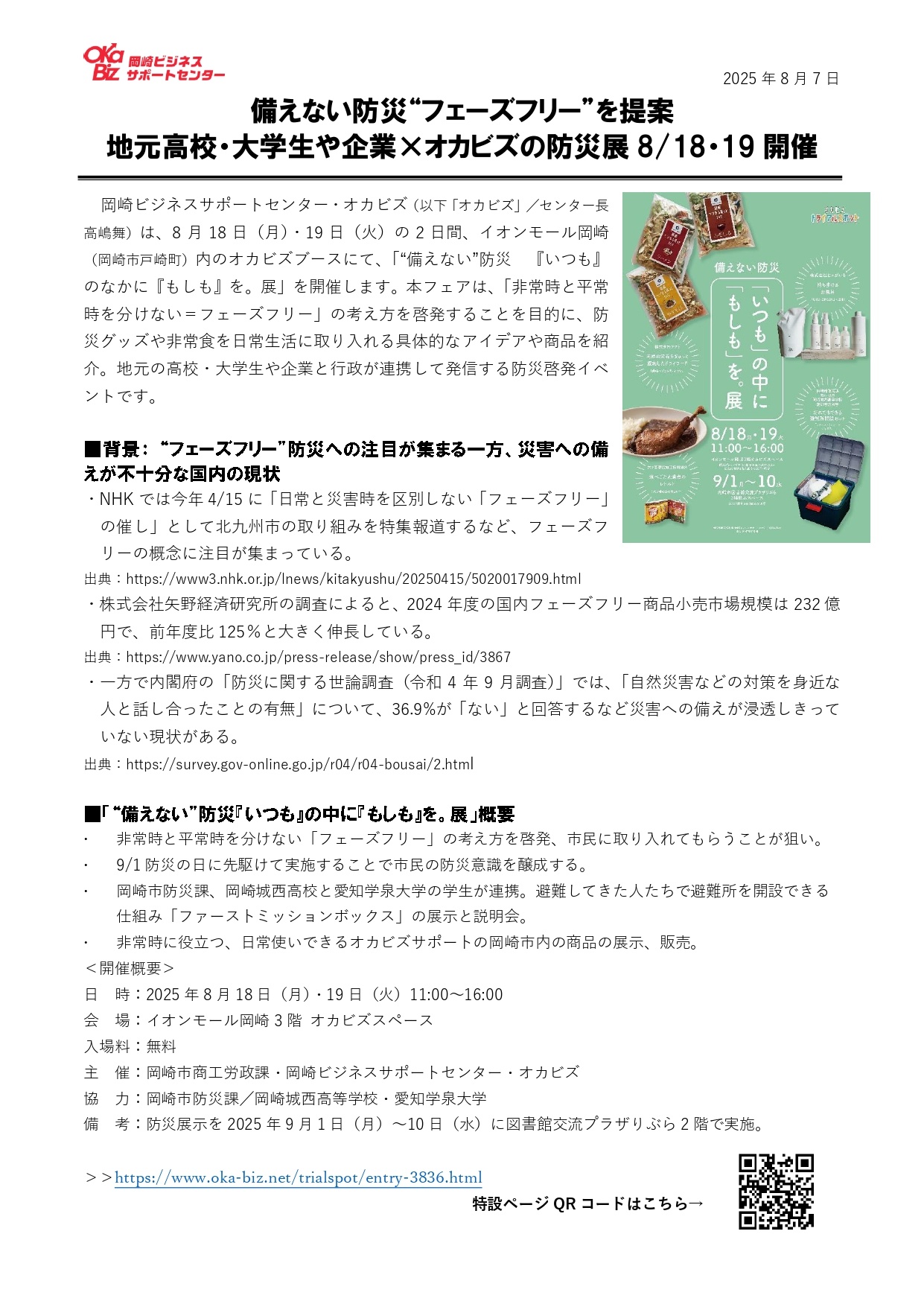 備えない防災“フェーズフリー”を提案、地元高校・大学生や企業×オカビズの防災展