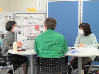 副センター長・高嶋(右)と意見交換する内水さん(左)