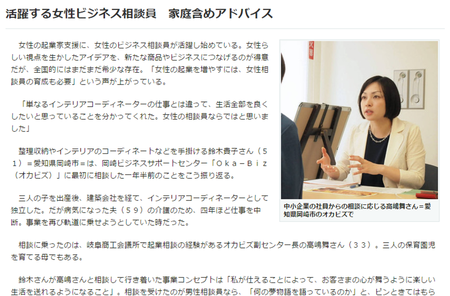 【メディア掲載】中日新聞「活躍する女性ビジネス相談員」