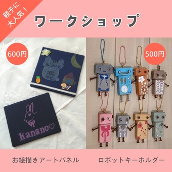 他にはアートパネルワークショップやバッグチャームなどの商品も販売します。