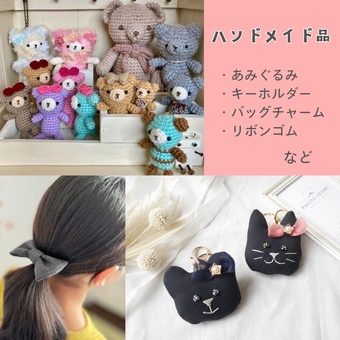 ハンドメイドのオリジナルキャラクターのあみぐるみくまちゃんのキーホルダーなどをご用意しています。